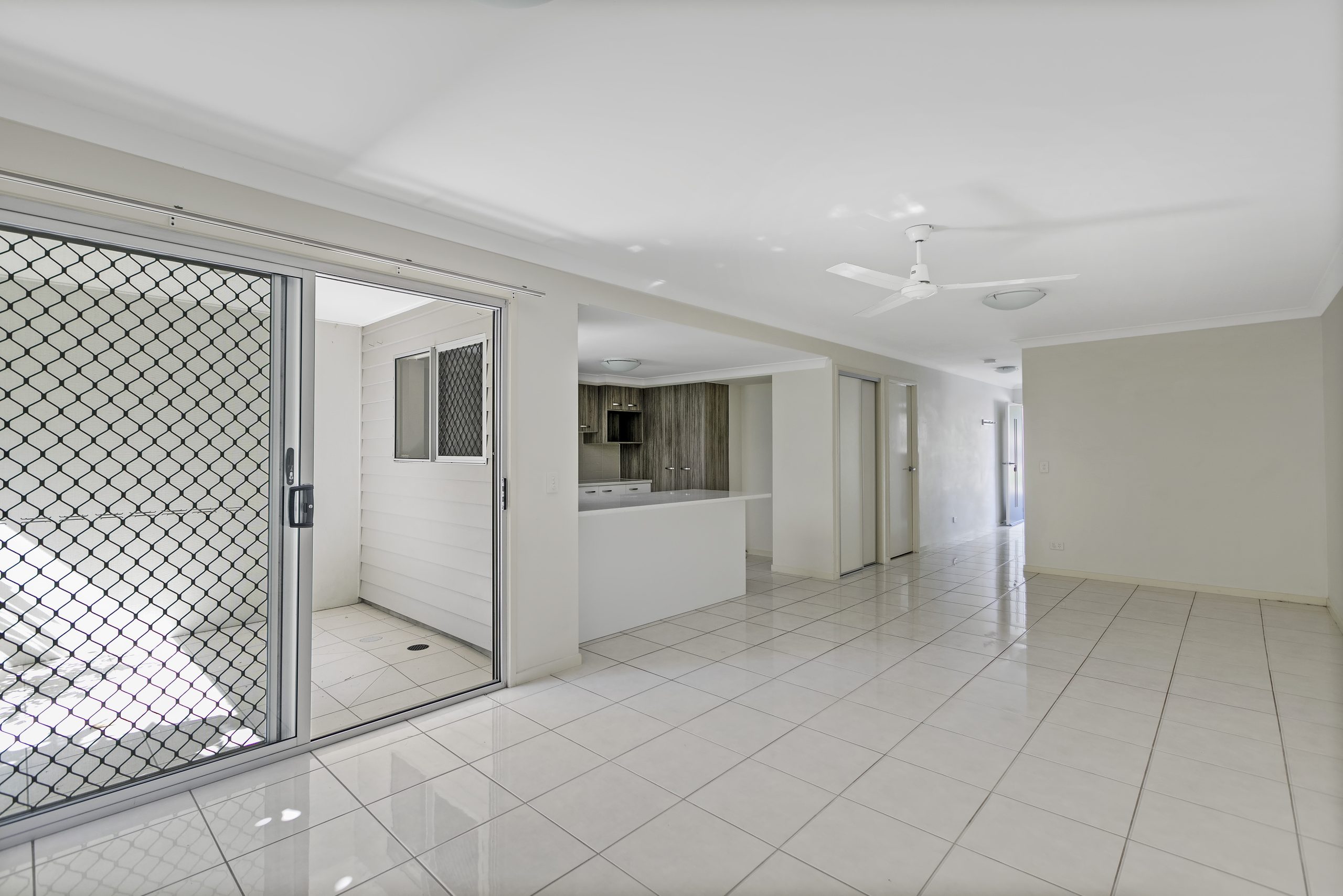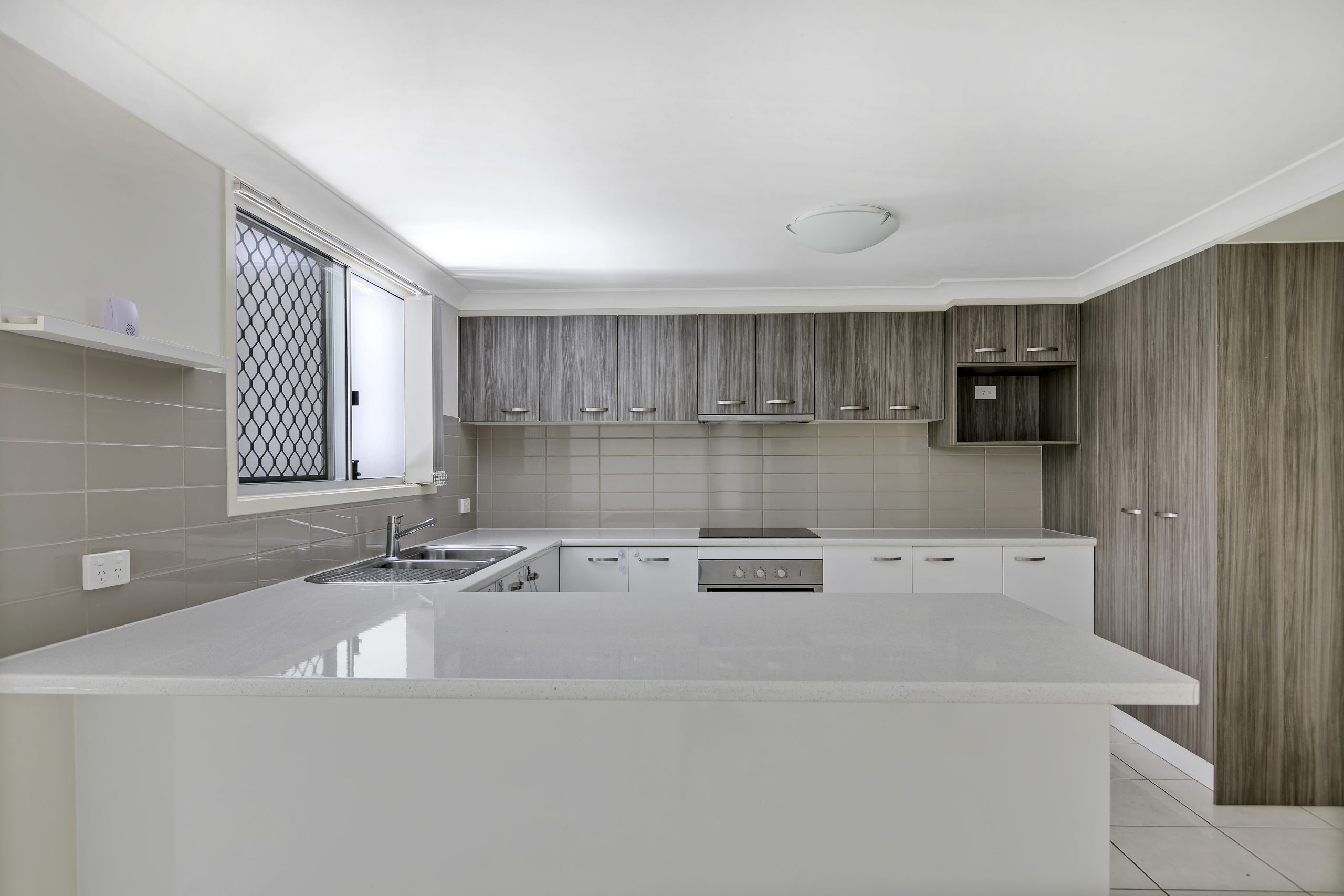A spacious kitchen with ample cupboards and caesarstone benchtops is central to the living area.