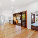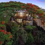 Open plan living and the entertaining deck enjoy elevated city views through the majestic Poinciana tree.
