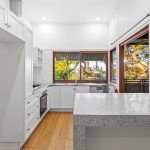The kitchen also enjoys the views, has stone benchtops, ample storage, gas cooktop, electric oven & dishwasher.