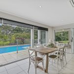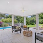 Open plan living has easy access out to the covered outdoor area with overlooks the pool.