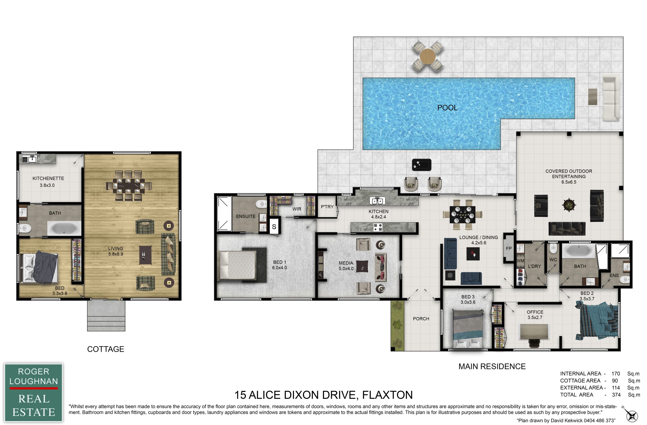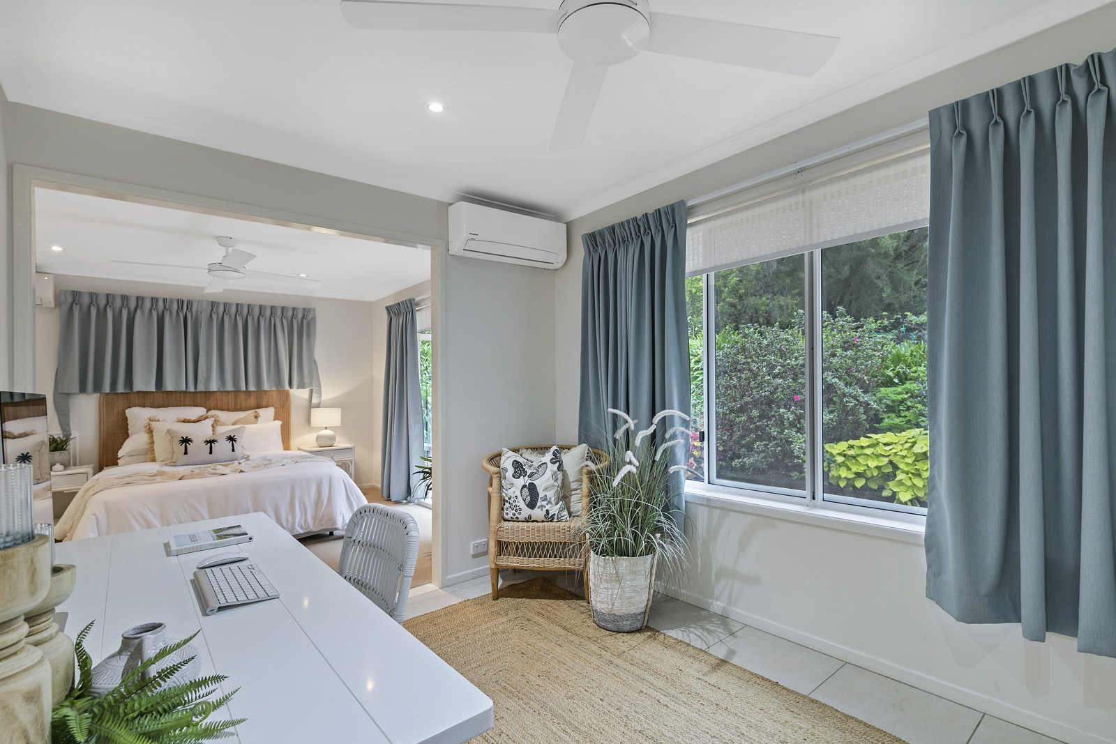3 bedrooms, 3 bathrooms, home office & two separate living areas in the main residence.