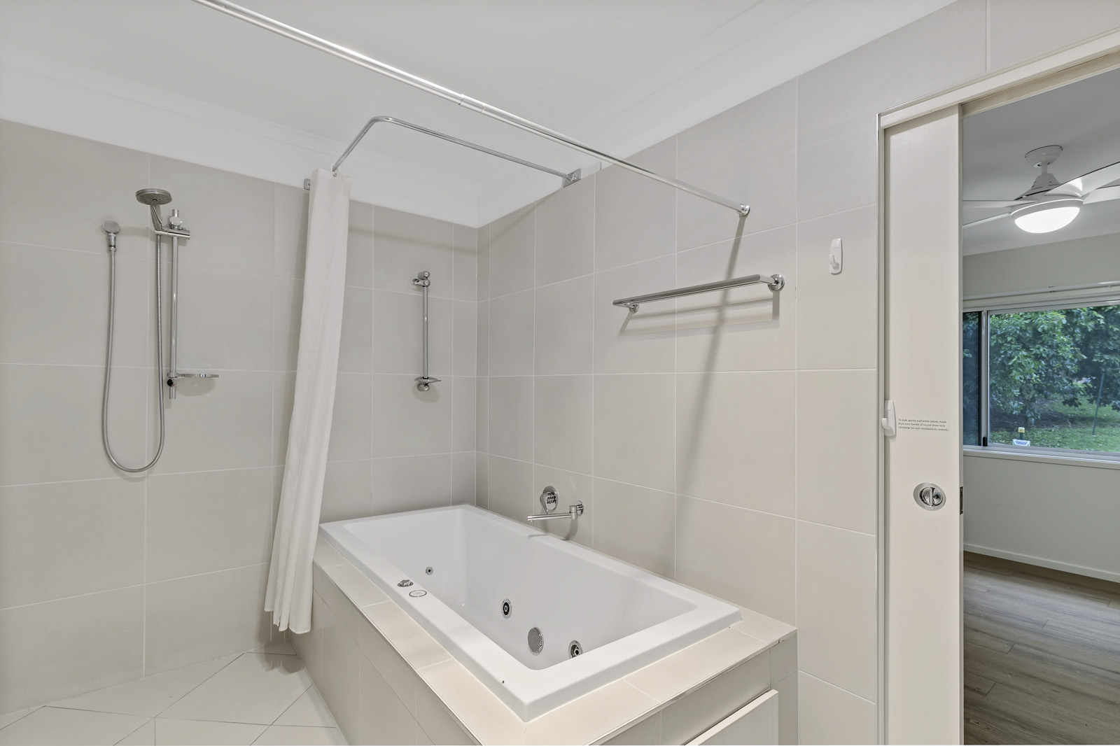 There is a kitchenette, laundry area, large bathroom which has a jacuzzi & open shower.