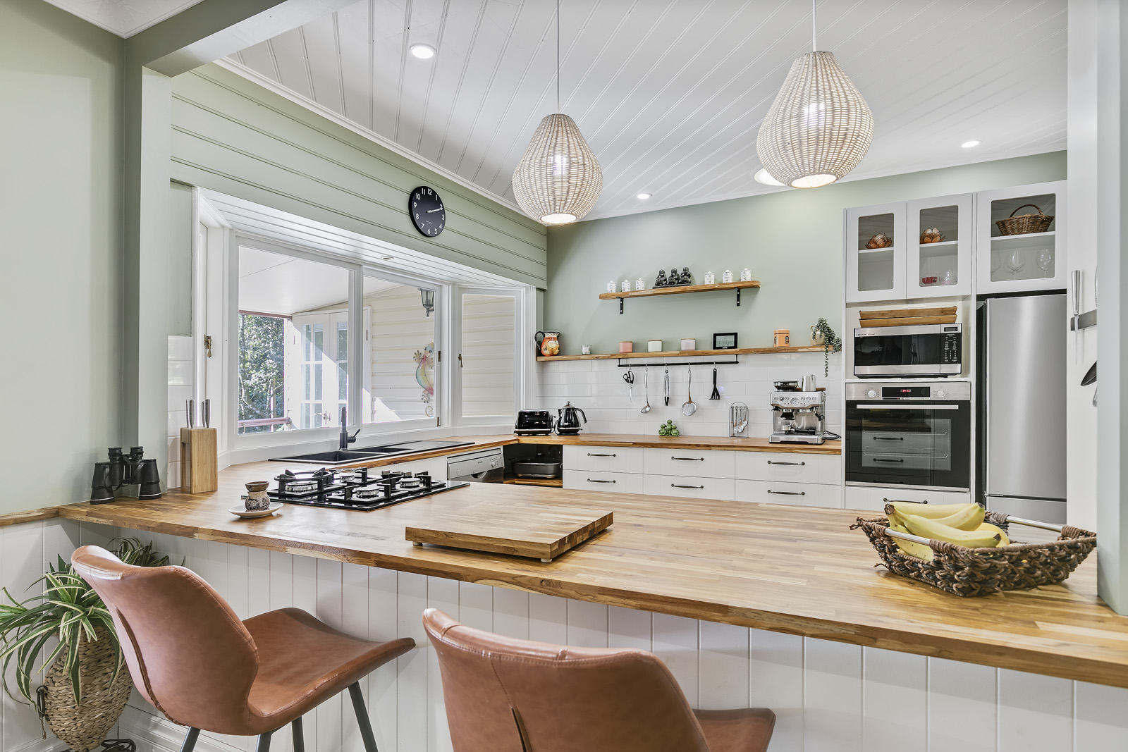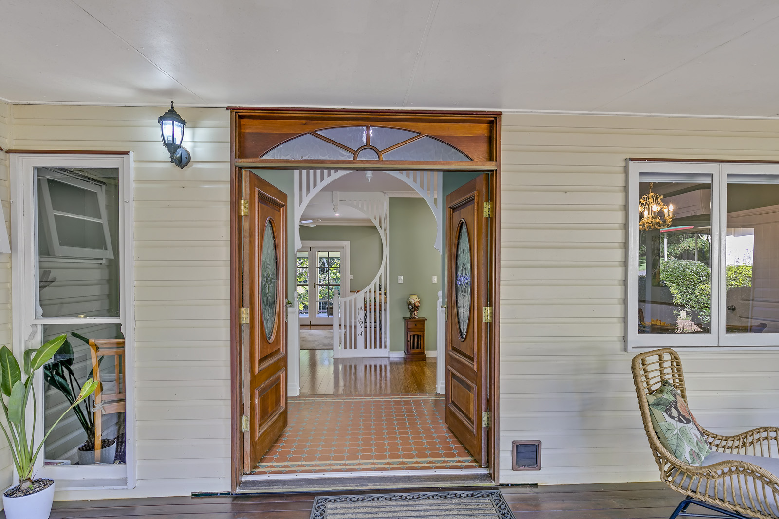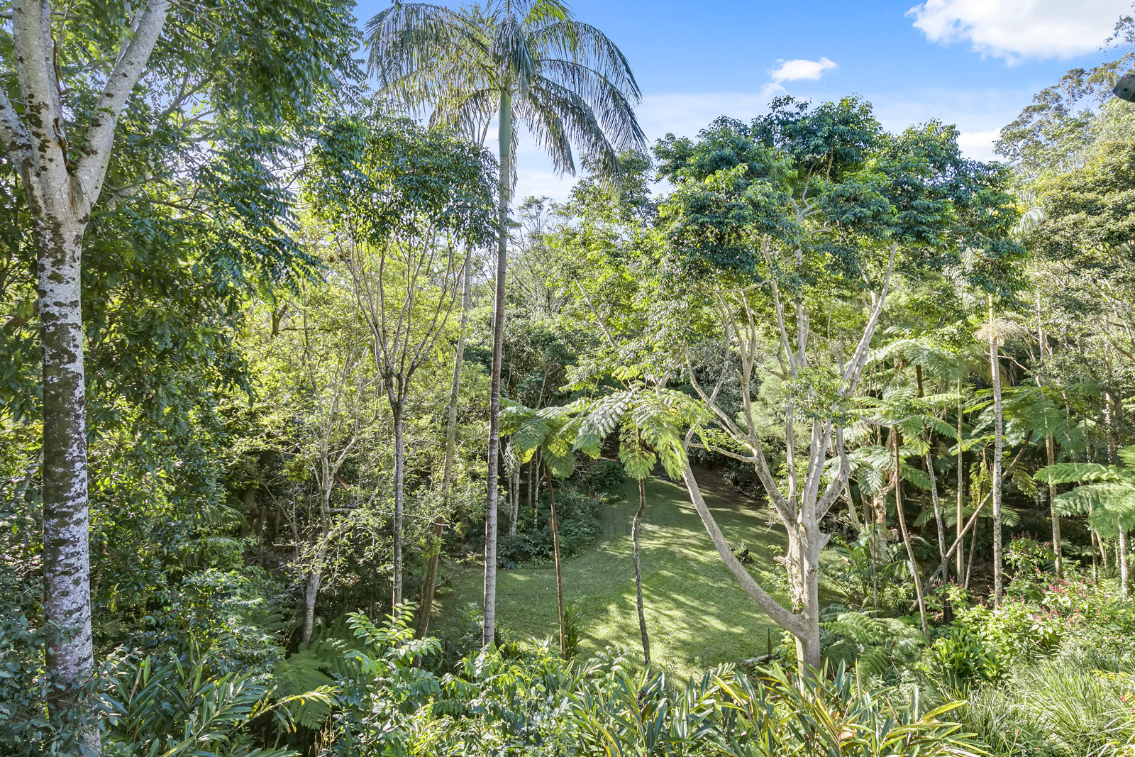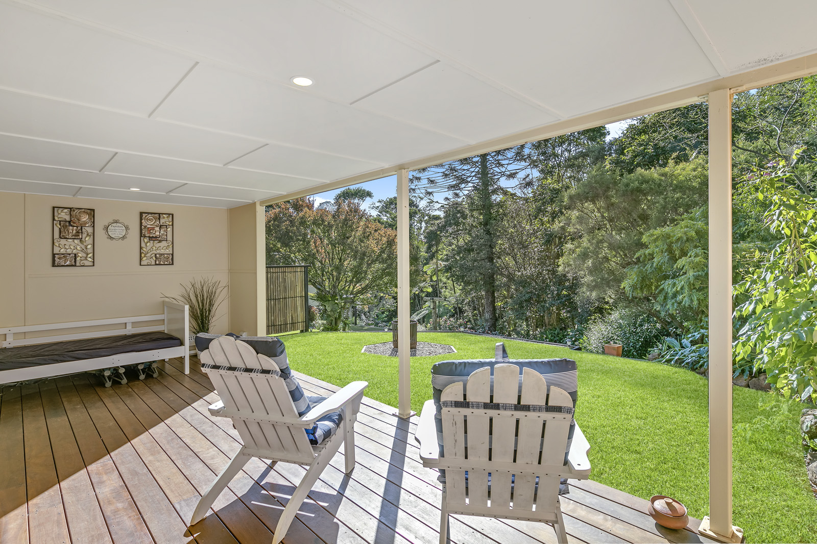 Expansive north facing verandah overlook the tropical rainforest area with views of the babbling brook.