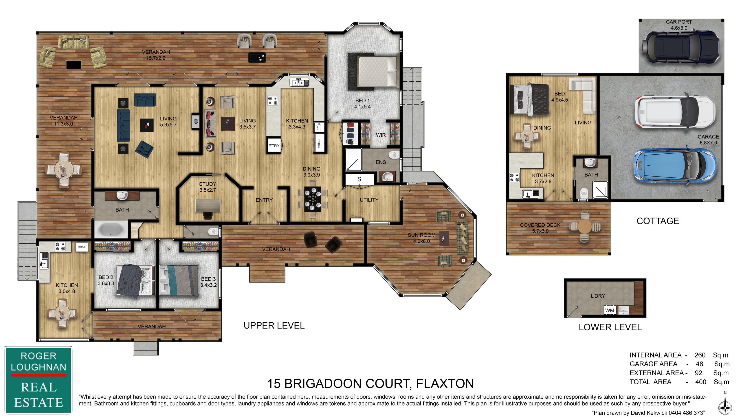 Offering 3 bedrooms plus study, 2 bathrooms and three separate living areas in the main residence.