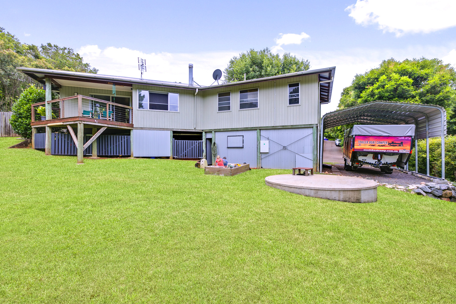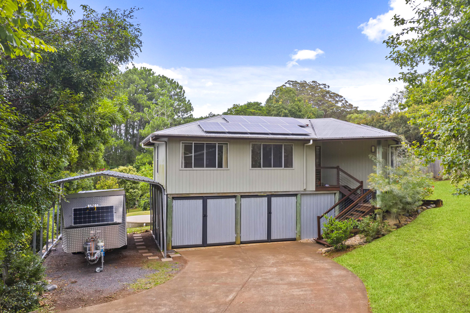 Room for two cars underneath or a large home workshop plus a portable caravan port for van or boat.