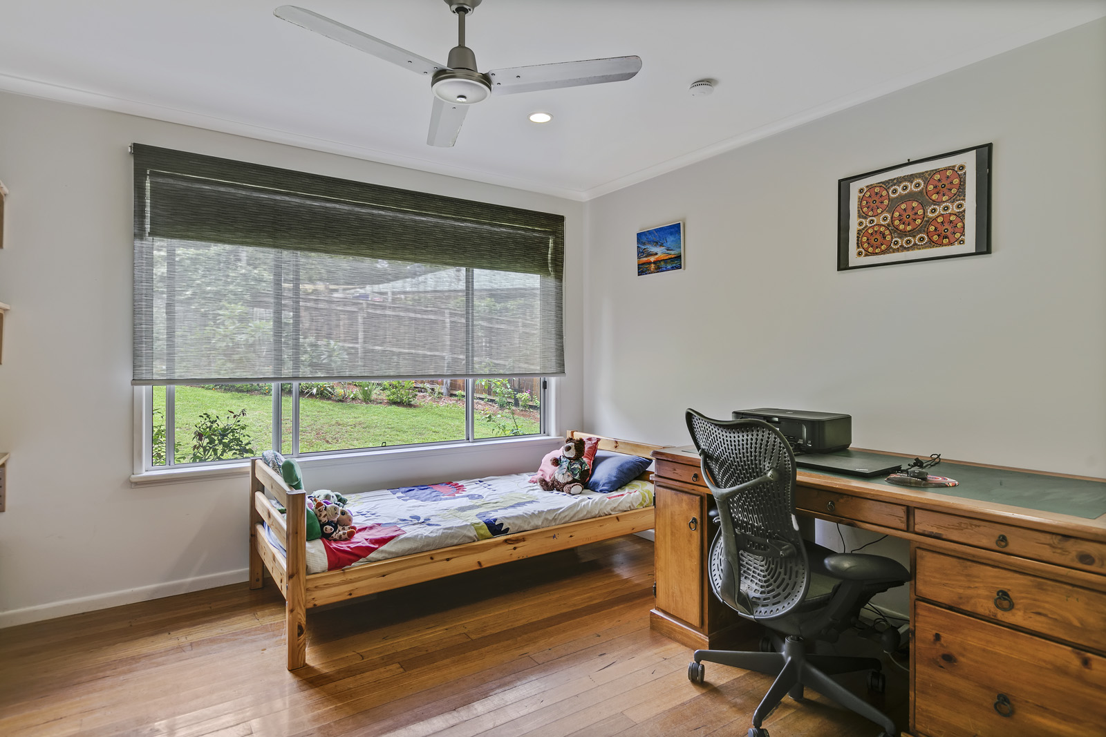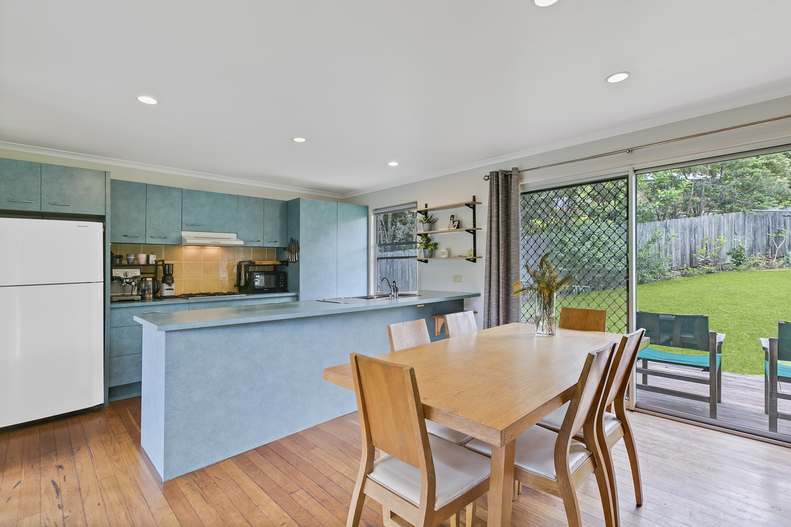 Timber floors throughout and natural light via large picture windows and glass sliding doors.