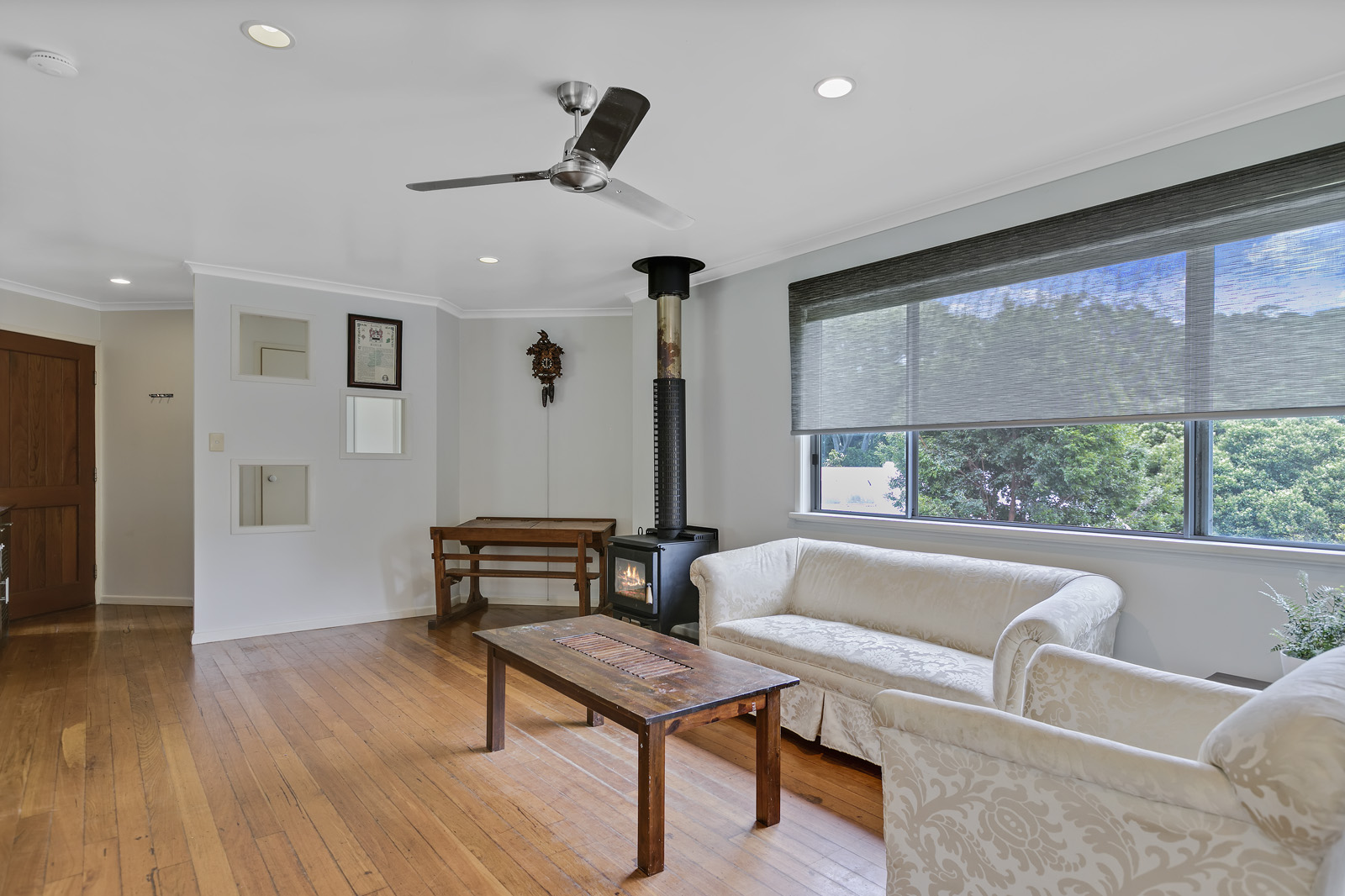 Slow combustion fireplace for the cooler months and ceiling fans throughout for Summer.