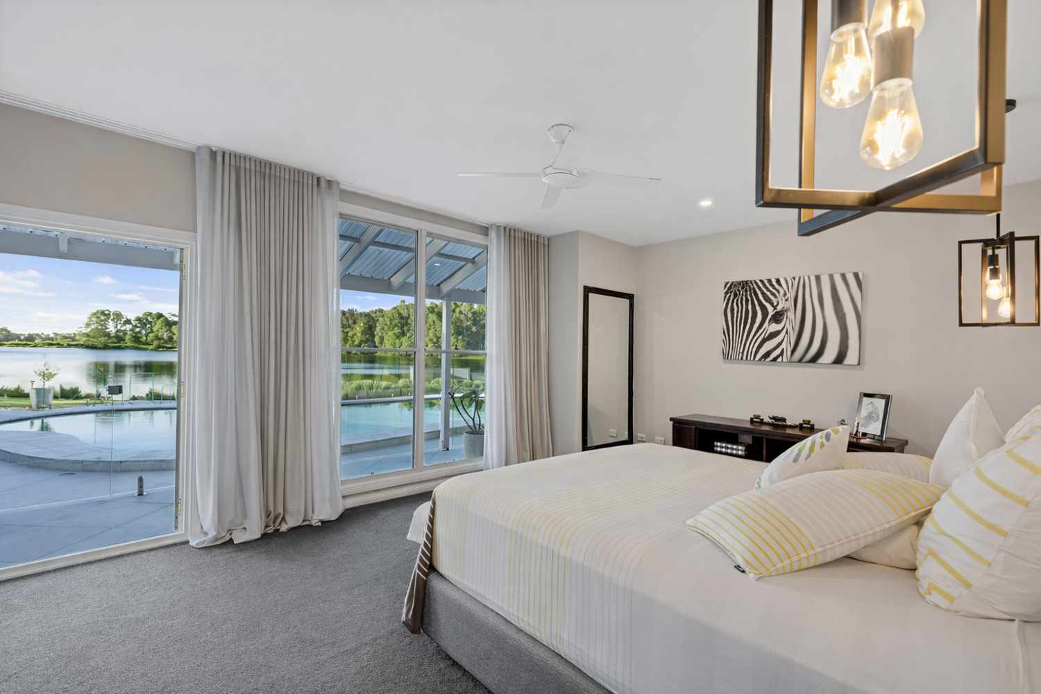 • Master suite with pool and lake views