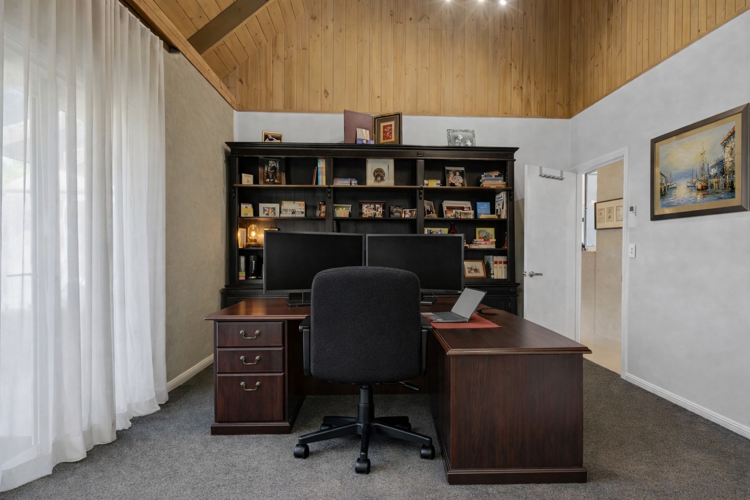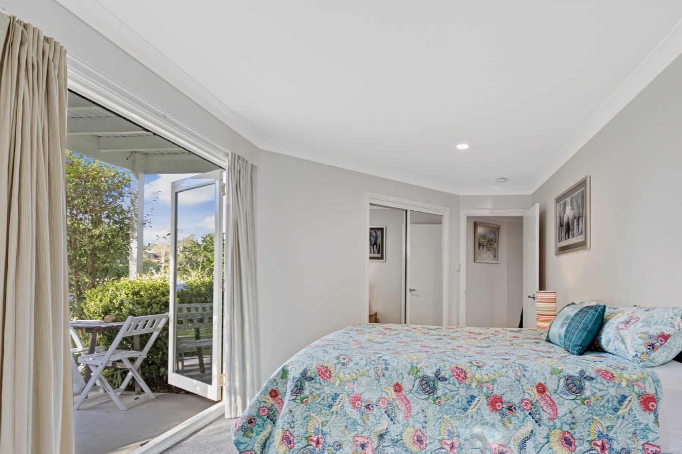 The newly created master suite is a private retreat with direct outlook across the pool and lake. It includes a generous bedroom, walk-in robe and resort-style bathroom with vaulted ceiling, freestanding bath, oversized shower, separate toilet and custom three-metre stone vanity. Guest accommodation is equally considered, with each bedroom enjoying bathroom access and four and a half bathrooms in total. A separate studio with private entrance and luxury bathroom adds flexibility for guests or extended stays, while a fully finished attic provides an additional office, hobby or creative space.
