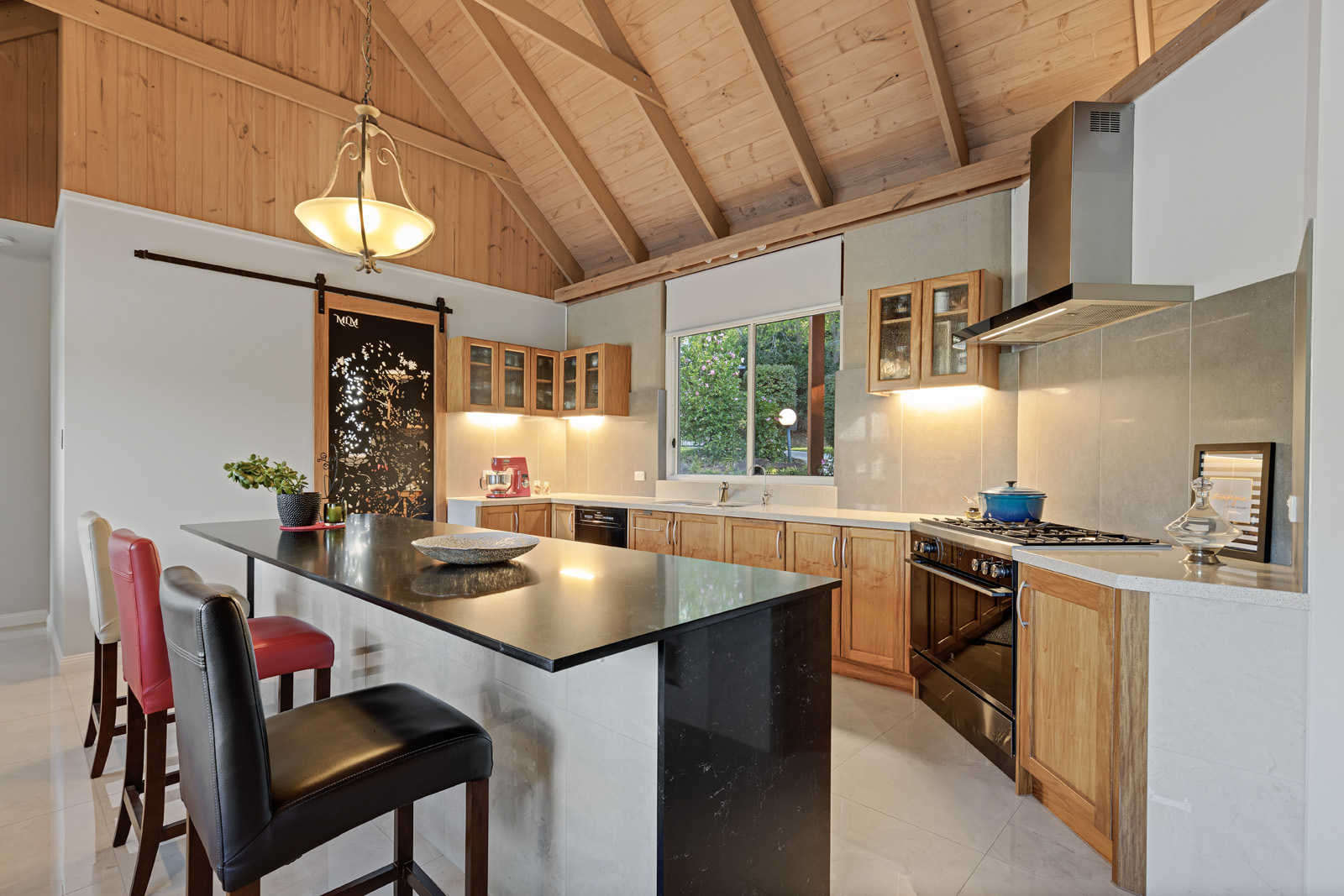 Previously recognised as a prize home, the residence has been renewed from roof to ground, inside and out. New additions were designed in collaboration with a leading Australian heritage architect to sit seamlessly within the original design language. Soaring cathedral ceilings, rammed earth textures, warm natural materials and expansive glazing frame the surrounding landscape from key living spaces.