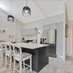 Designer kitchen with stone benchtops, good storage and modern, stainless appliances.