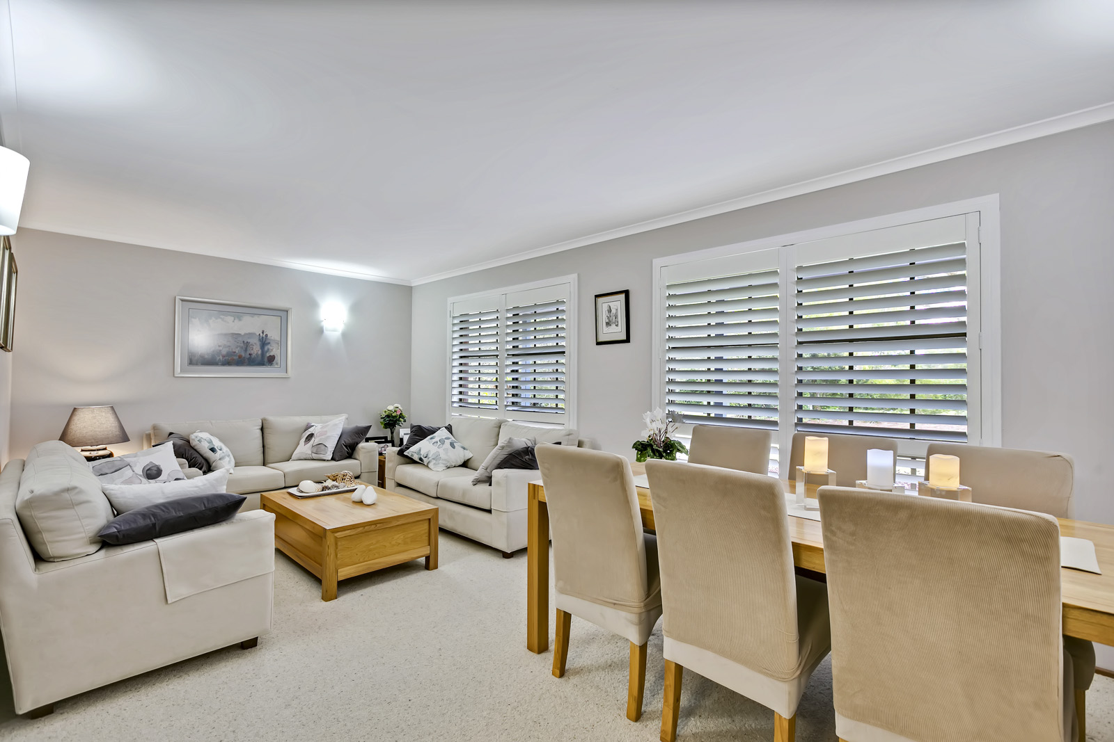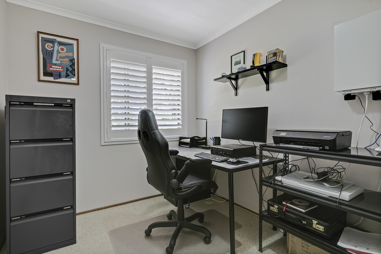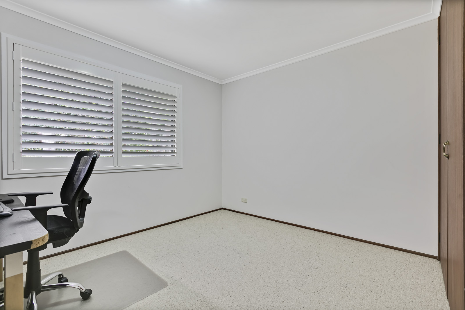 Plantation shutters are fitted in the formal living room, bedrooms and study