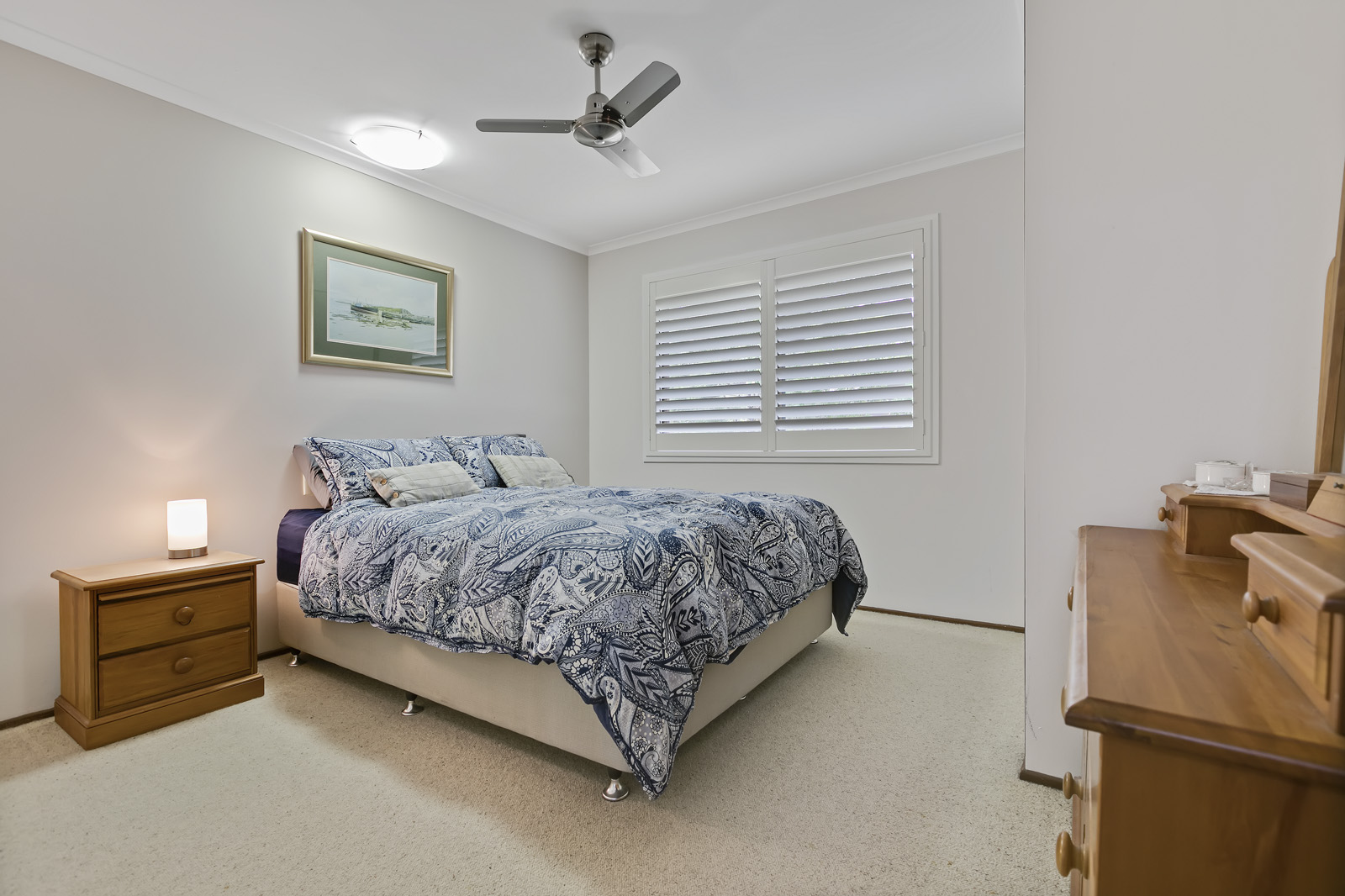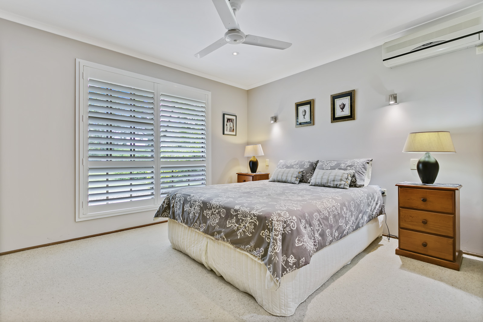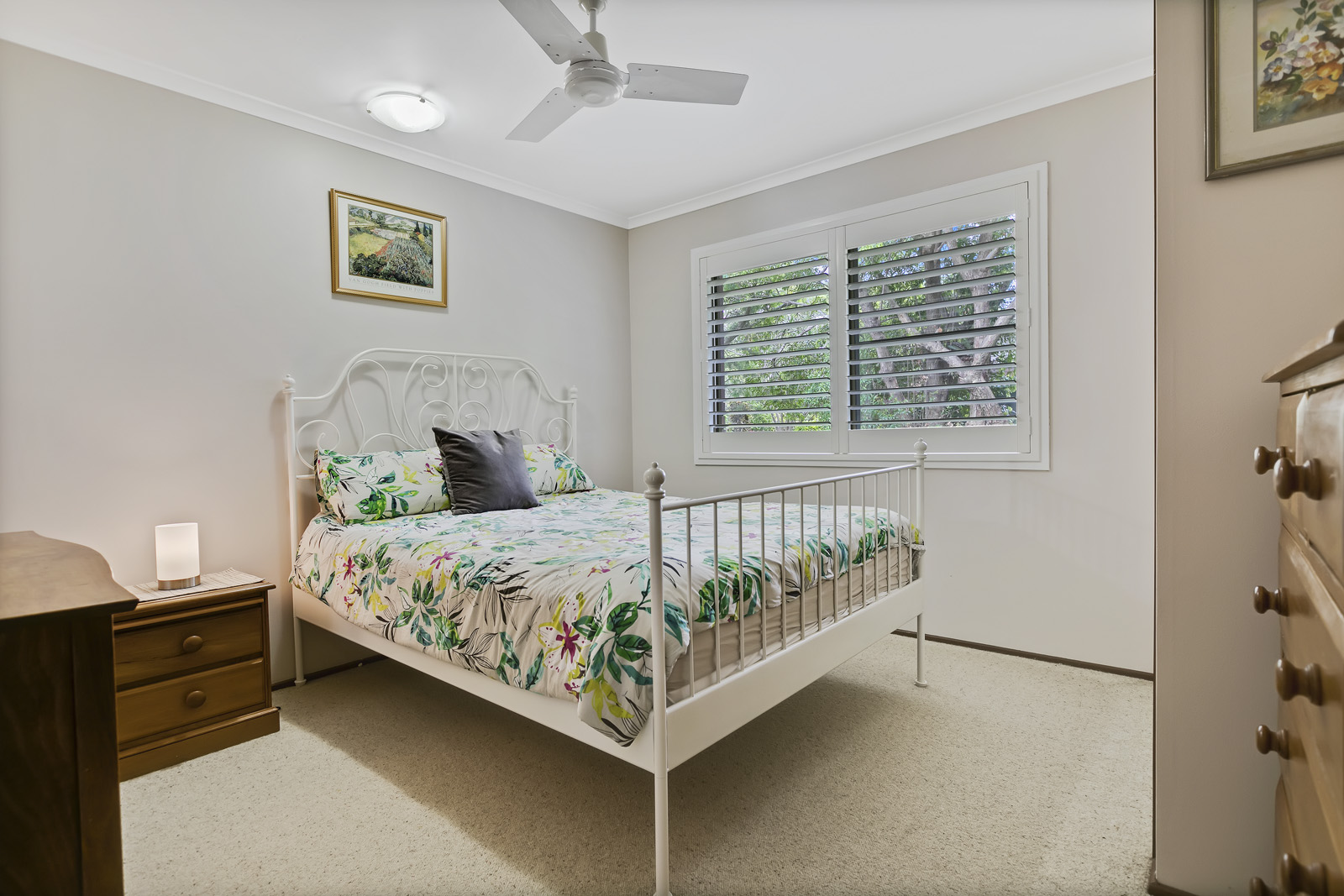 Plantation shutters are fitted in the formal living room, bedrooms and study