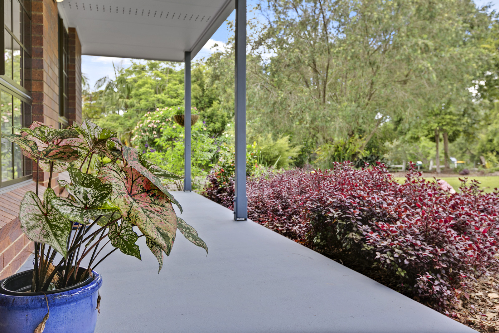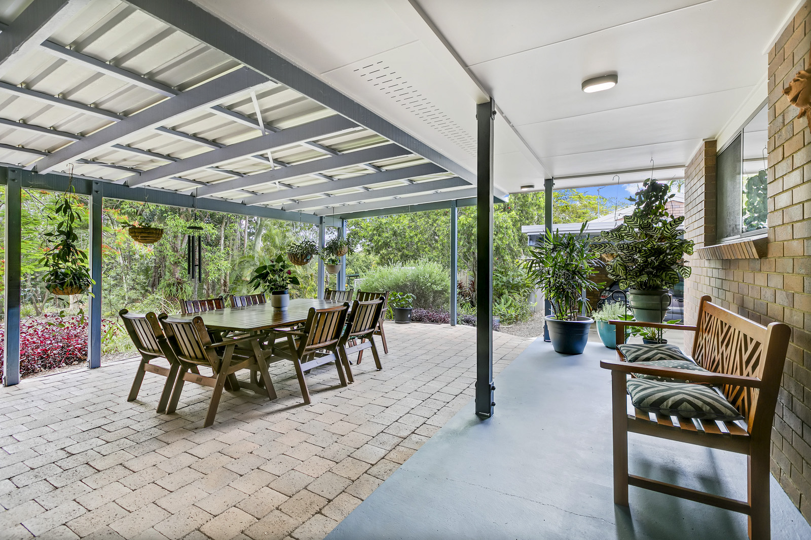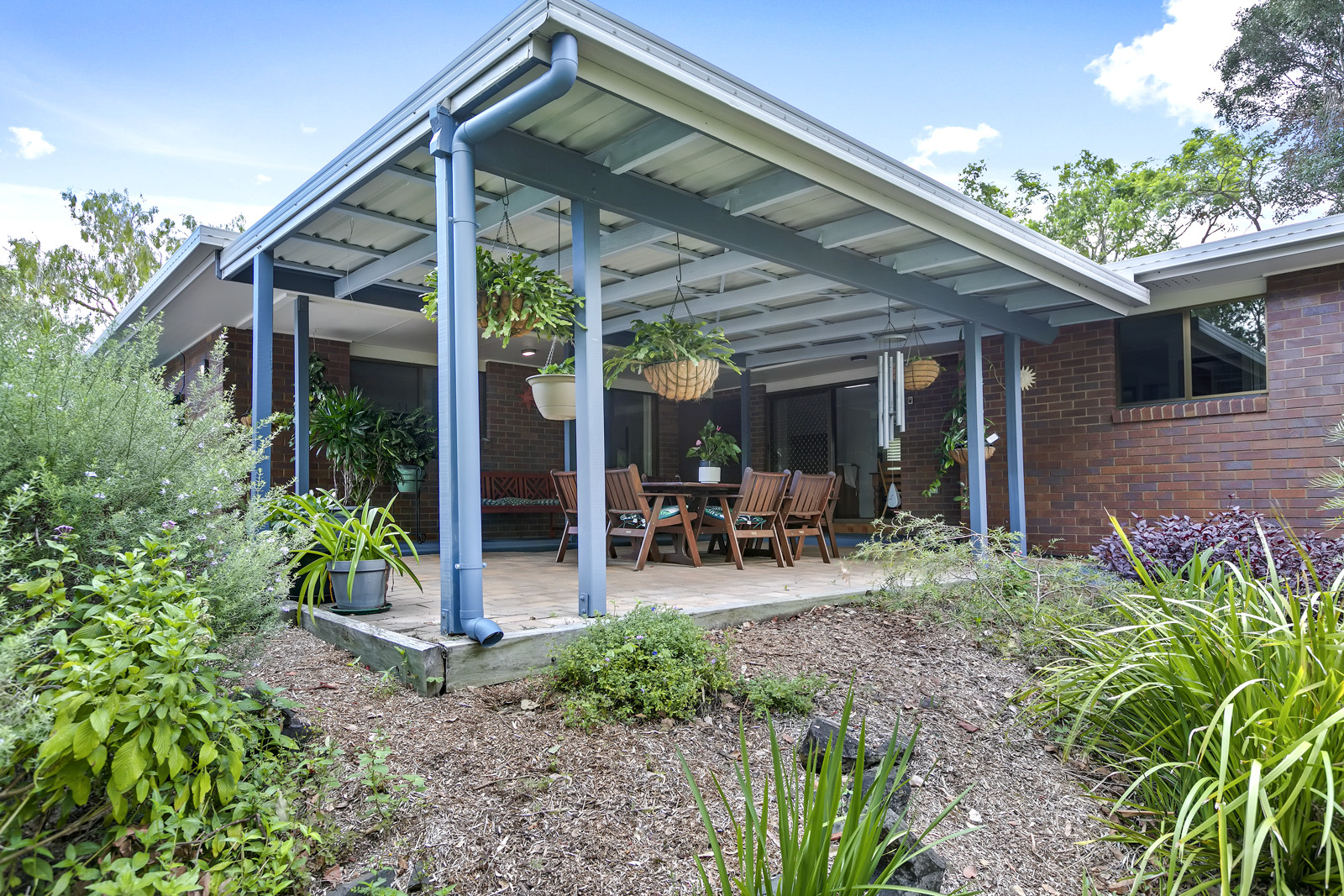 Great undercover entertaining area looking over lovely gardens and established trees
