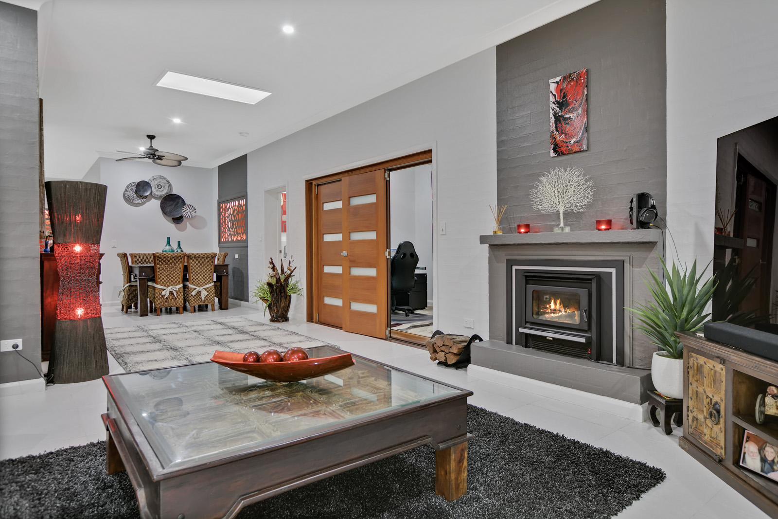 Two 8KW split air conditioners plus a slow combustion fireplace ensure all year round comfort.