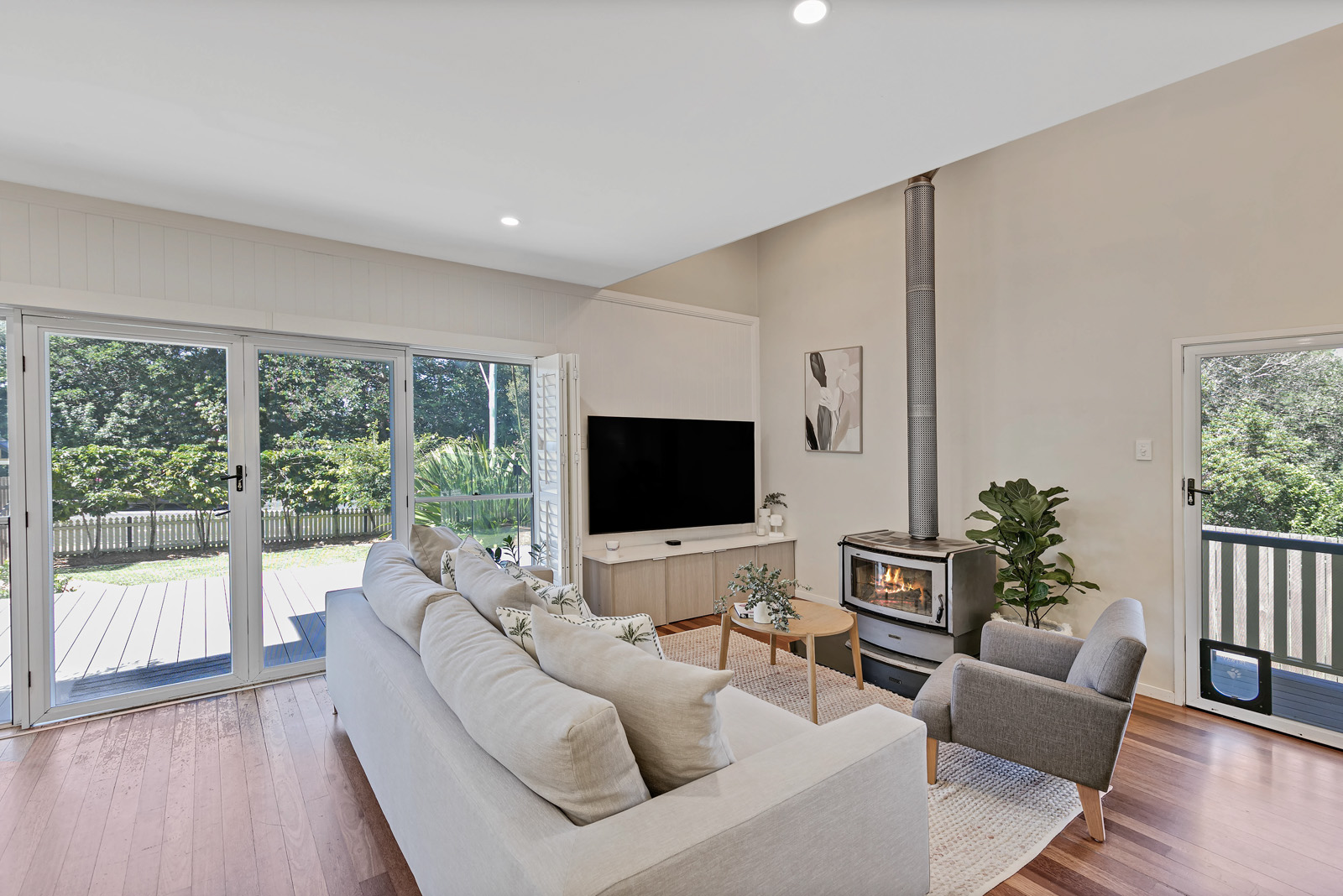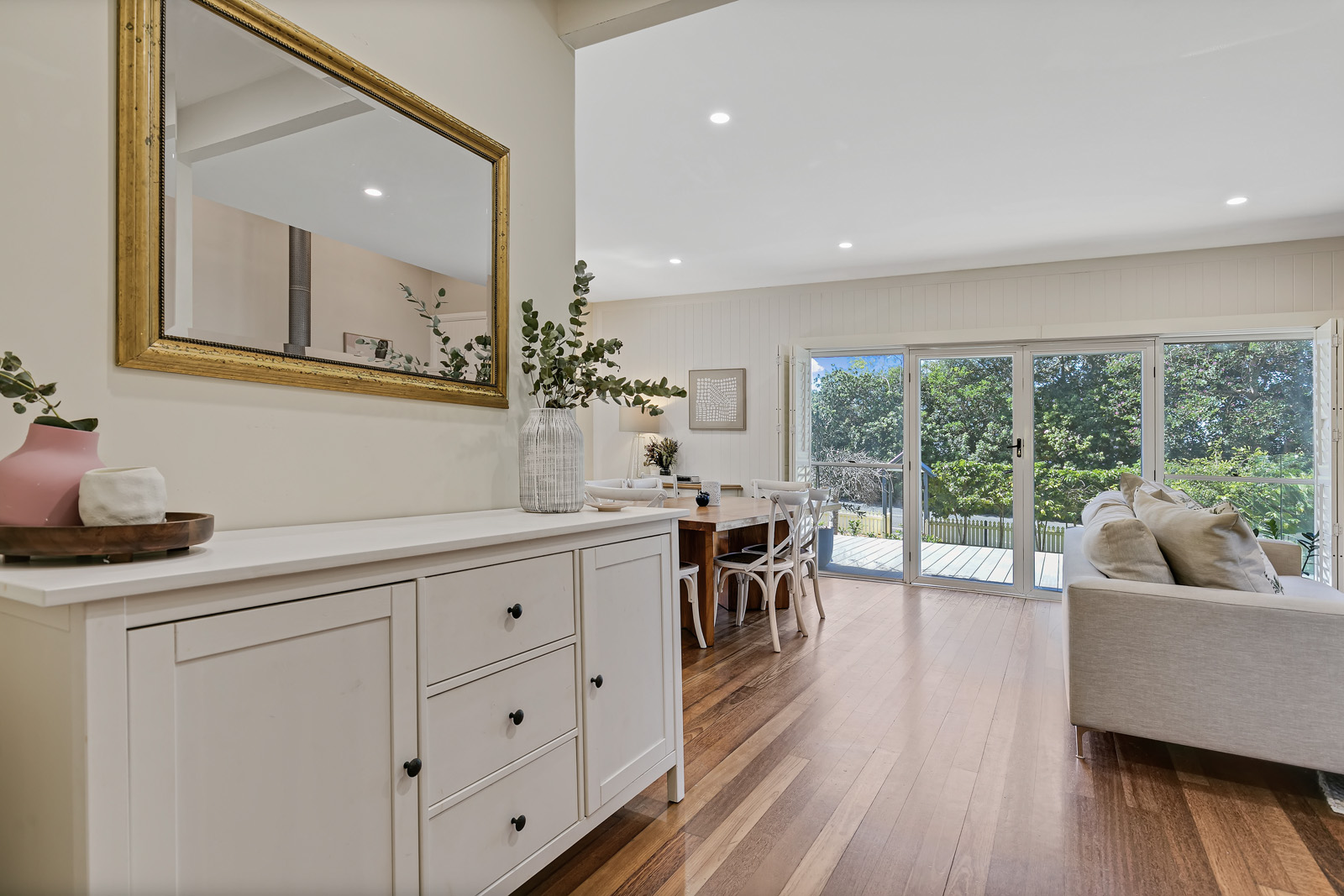 Designed for both relaxed living and effortless entertaining, the open-plan living and dining zone flows seamlessly onto a large front deck ideal for hosting family and friends while enjoying the tranquil surroundings.