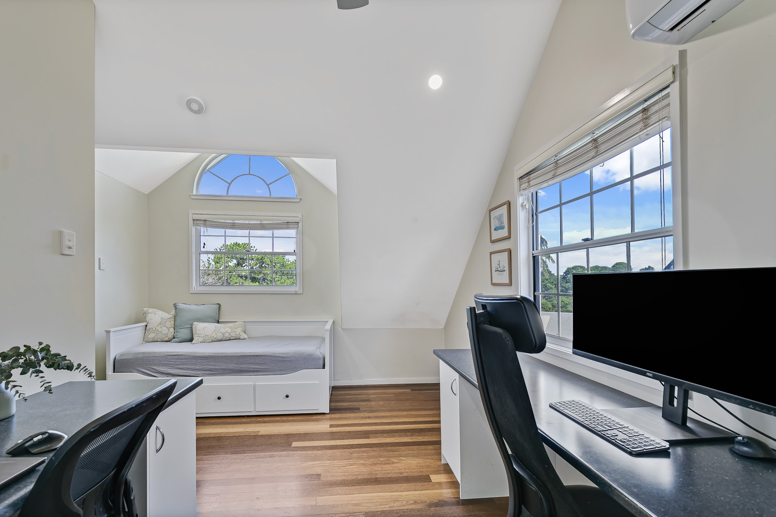 A separate multipurpose nook off the living area provides flexibility as a second lounge, study or children’s retreat.