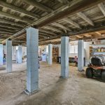 Loads of storage, laundry and work-space including benches and shelving, under the full area of the house on ground level