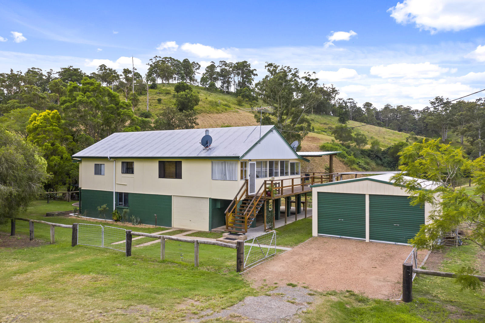 Highset 3 bedroom farmhouse on 3.95 hectares (10 acres) with stunning valley views overlooking a large cattle property and surrounding hills
