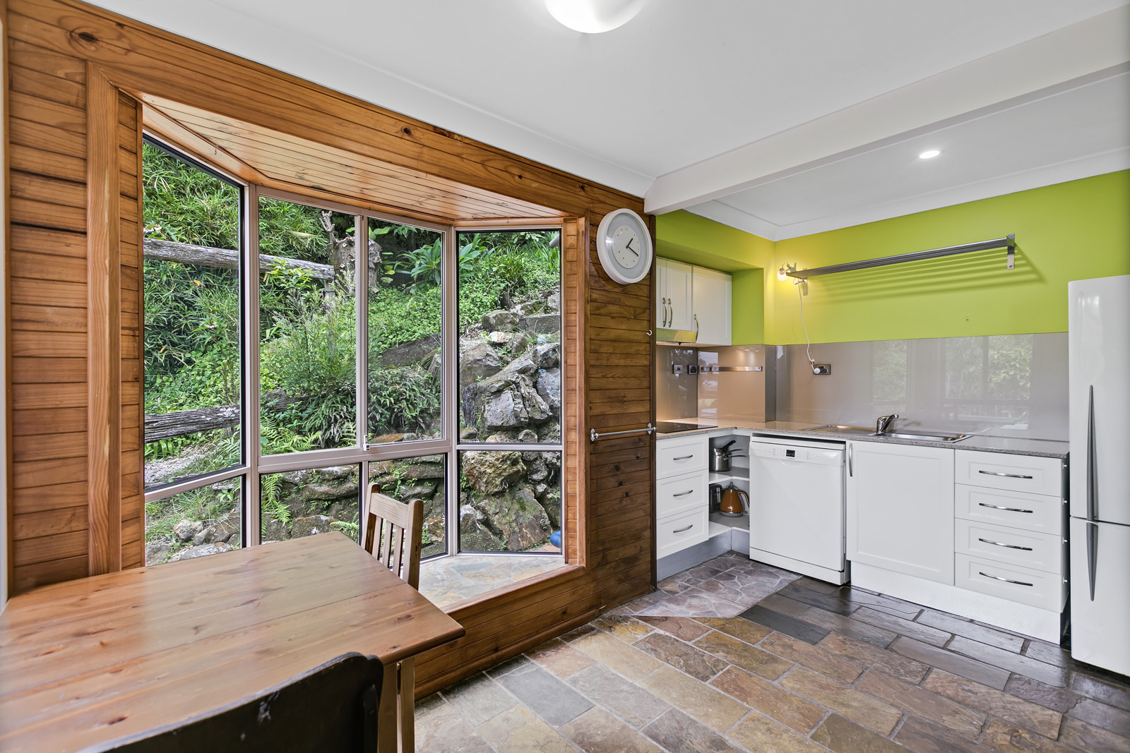 Positioned privately down off the road with timber stairs leading down to the front door.
