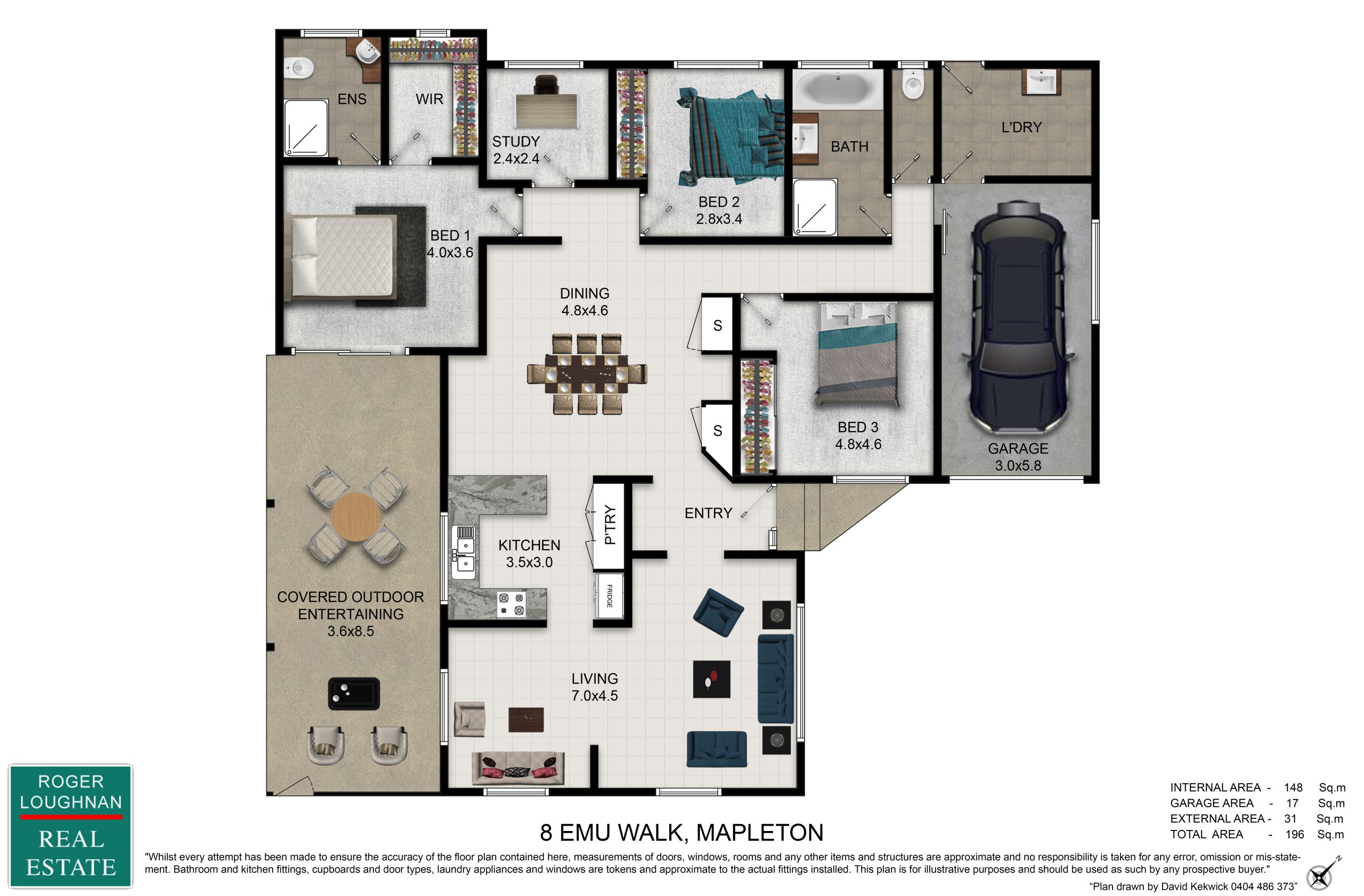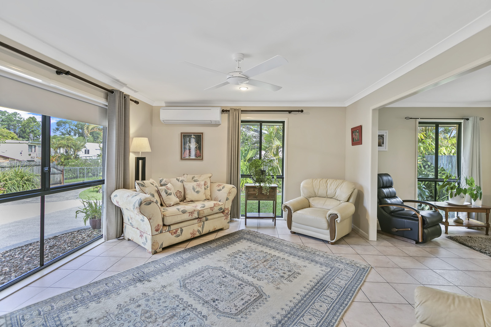 Features include tiled floors throughout and a large 8KW split system air conditioning.