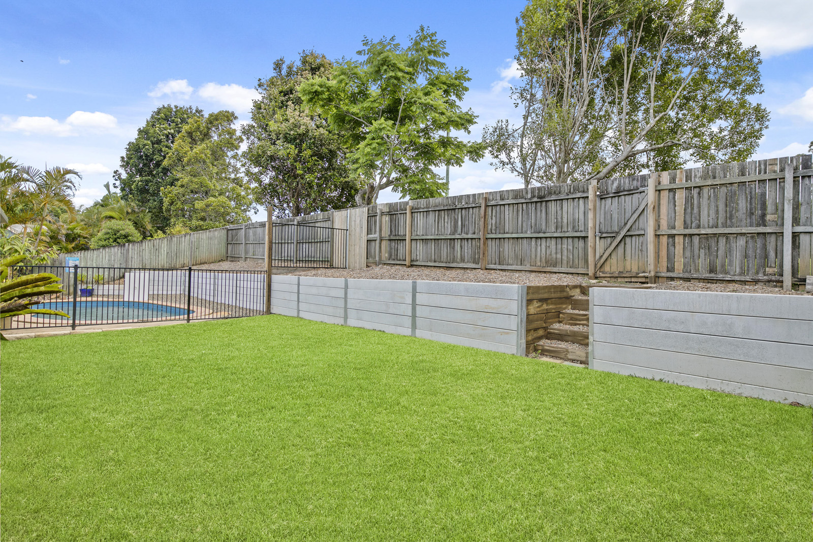 This new garden area is a blank canvas for someone to put their style into the pool area.