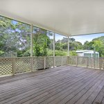 Spacious back deck with high flyover roof is the perfect place to entertain or relax at the end of the day.