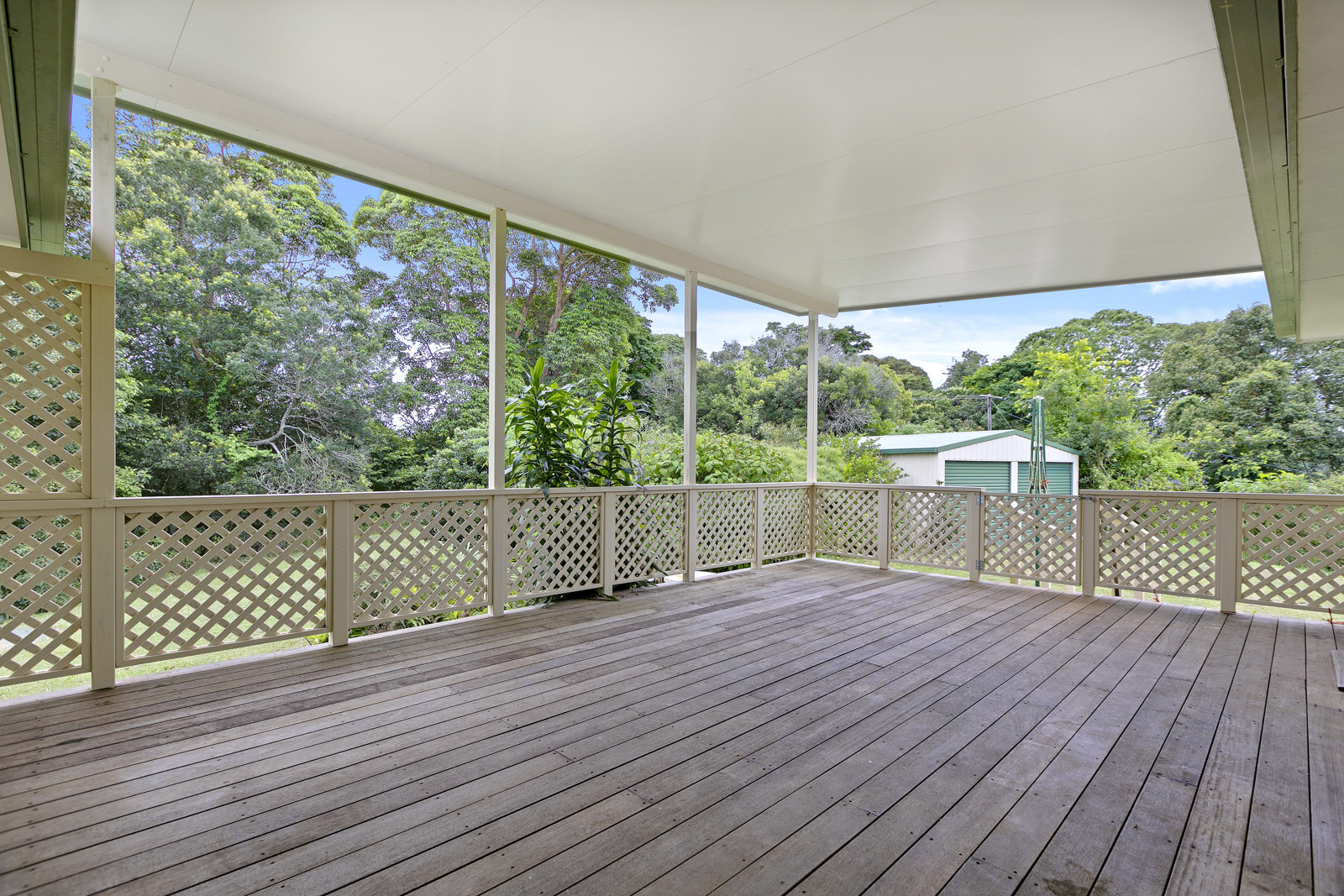 Spacious back deck with high flyover roof is the perfect place to entertain or relax at the end of the day.